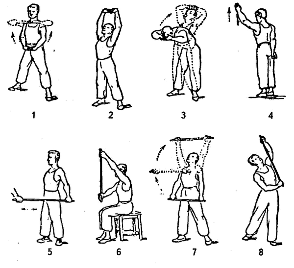 Должны быть двигательные нагрузки на плечевой сустав.